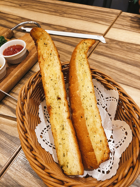エビフライ、バケット、ハンバーグとあり、味変しながらビールをグビグビ(≧∇≦)