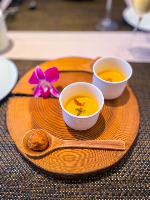 まろやかなヨーグルトジェラートが全体をやさしくまとめ、桃の甘さ、大葉の香り、ひんやりとした口どけが美味しかったです。