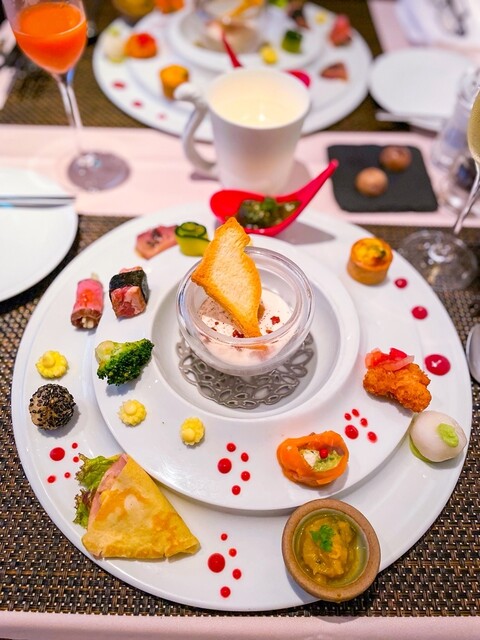 パレットオードブルは、14種の前菜が一皿に並ぶ絵画のような美しさで、SNS映えする見た目にテンションがあがります。