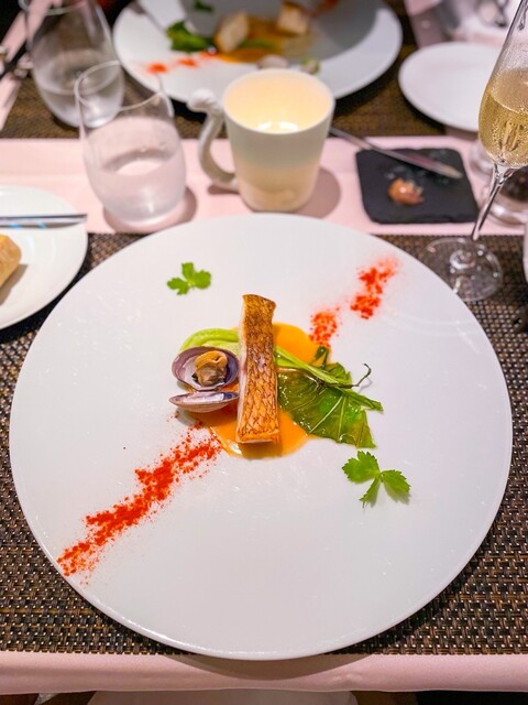 真鯛のポワレ ヒュメドポワソンと梅肉のソース