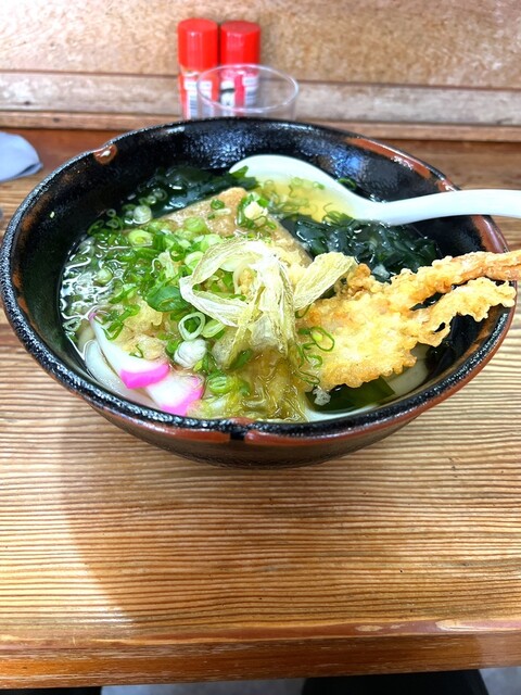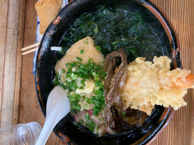 こんぴらうどん(エビ天、わかめ、きつね、おぼろ)