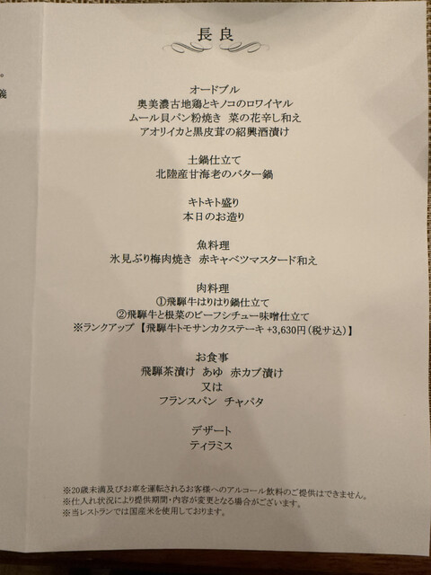 そんなホテルのレストランで味わう、飛騨、奥美濃と日本海の旬の食材を楽める懐石。