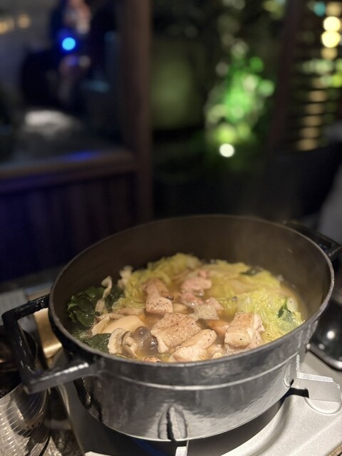 森のきのこと炙り国産鶏のバジル鍋(4,400円)