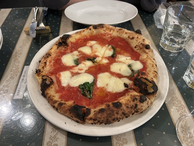 ピザが美味い店。ネット予約で13時半に訪問したが、この時間でも予約していない人は待っている。予約は必須。店の雰囲気は良く、テーブルもゆったり。前菜、マルゲリータ、クワトロフォルマッジ、白ワインデカンタで大満足。