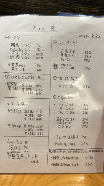 またもや来てしまいました。私の中でやはり泉州ナンバー1の推しのお店です。今回は定番の麺虎ラーメンにニラめしを注文してみました。ニラめしはニラとキムチ?辛味噌で和えたものにチャーシューの細切れが入っております。これもアリですね。旨しでした。ご馳走様でした!