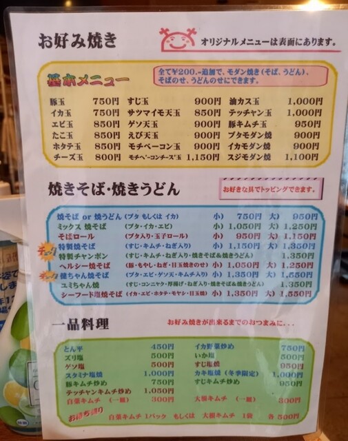 ■ ワイドABC焼(ブタ・エビ・モチ・玉子入り・チーズのせ+そばモダン)