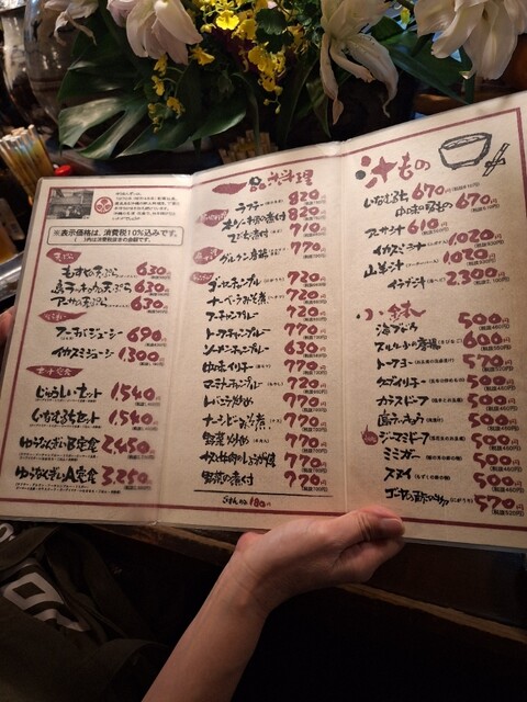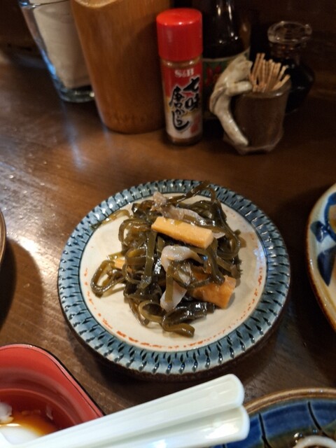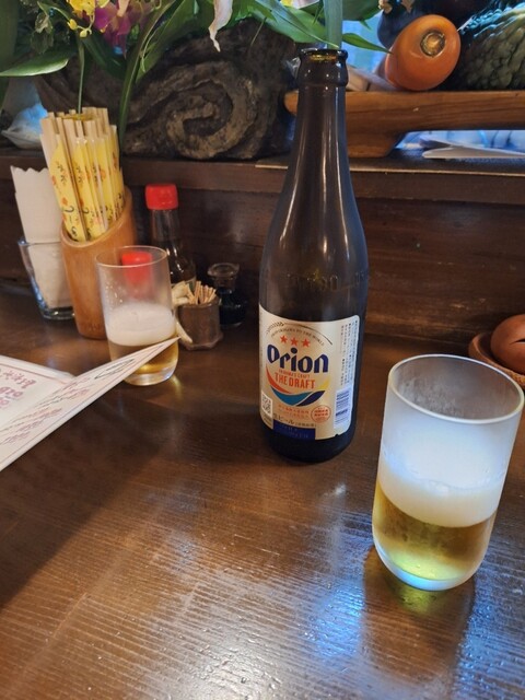 ★ラフテー(三枚肉の角煮)•フーチャンプルー(くるま麩と野菜豚肉の炒めもの)•ミミガー(豚の耳)•ジーマーミ豆腐•クーブイリチー(昆布の炒めもの)•いなむるち(沖縄の豚汁)•ご飯の定食 税込2450円 ★オススメメニューから盛合せ(もずく•イカ天•厚揚げ豆腐) 税込700円 ★オリオンビール(中瓶) 税込690円 を注文しました。