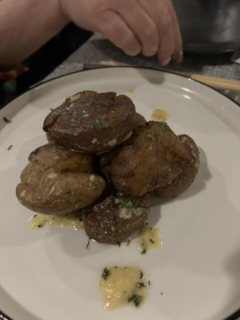 ハワイ旅行という事で奮発してシーフードプレート、ステーキ、ホタテ、カンパチ、ポテトのお料理を4人でシェアしてちょうどのボリュームでした。