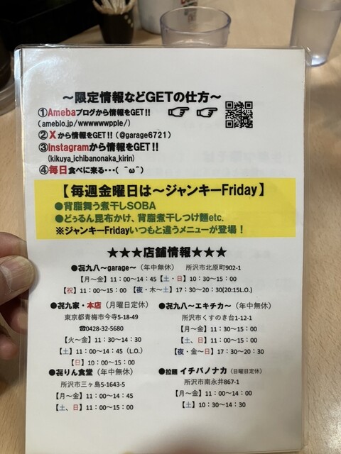 新所沢からは少し離れますが、所沢では行きたいと思っていて結構前から保存していた『㐂九八(きくや)garage』さんを訪問しました❗️