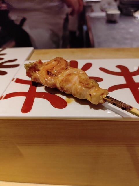 豪華な付け出しで気分も高まり、さぁメインの串と行きましょうか。最初から大本命のレバー。臭みなし、食感よし、火入れ絶妙。こんなのは日本でしか食べられないと絶賛。