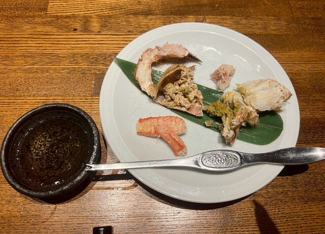 そして中盤、念願のカニ。香箱蟹でした!写真の通り、これはひとつひとつ手作業で殻から身を取り出して、すごく丁寧な仕事をしていることが一目瞭然。思った以上にボリュームもあり、大満足です。