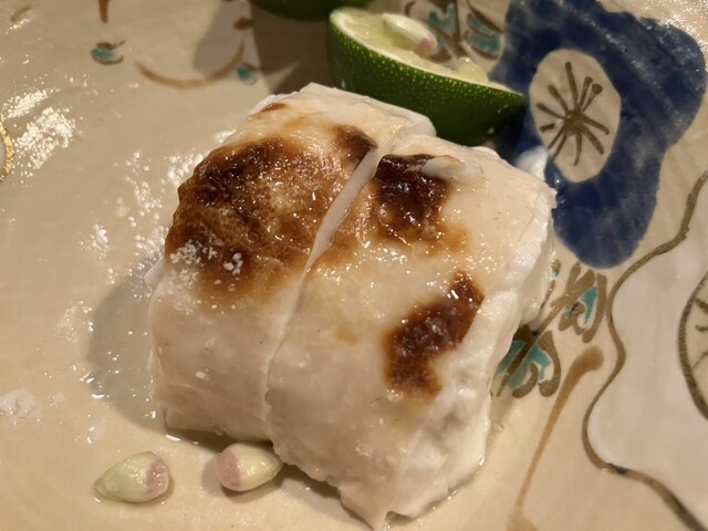 初めての訪問で粭コースを友人と2人の予約。まずは瓶ビール半分こで喉を潤し、そのあと凍結酒へ。料理の方は旬の富山のほたるイカ、煮凝りなどをいただいたあと、いよいよお刺身、唐揚げを食し、やっぱり今しか食べれない白子を追加オーダーさせてもらい友人とシェア(写真は半分です)。うーん、濃厚!お酒と合う合う。そのあとひれ酒に進み、ちり鍋、雑炊はもう身体の中に幸せがどんどん入っていく感じ。