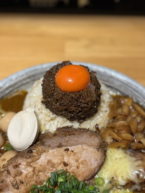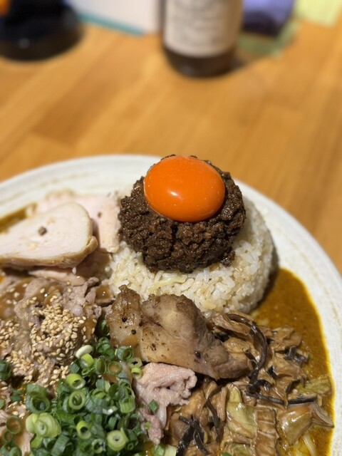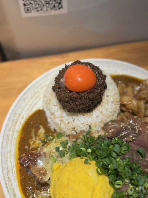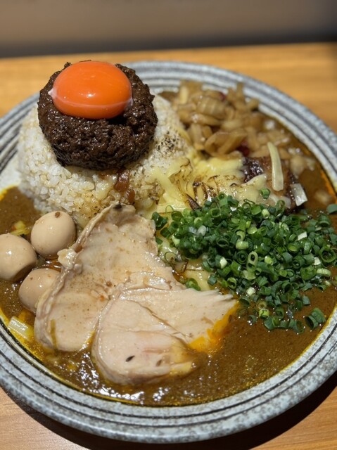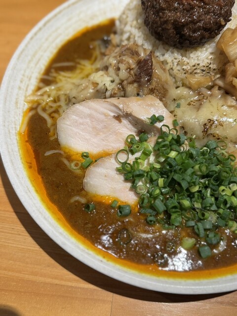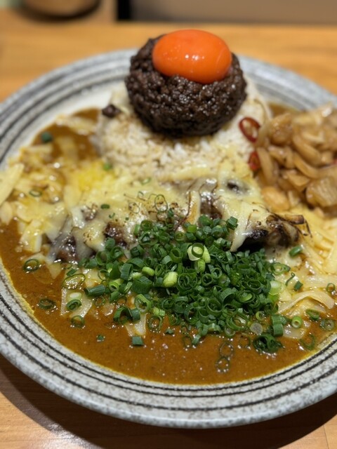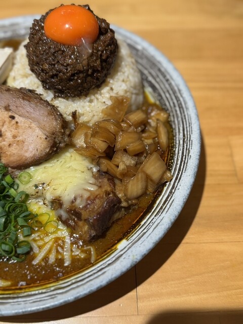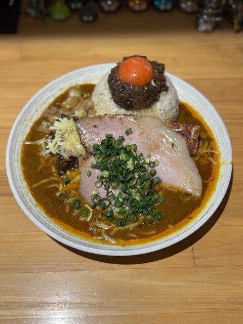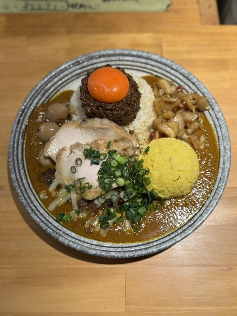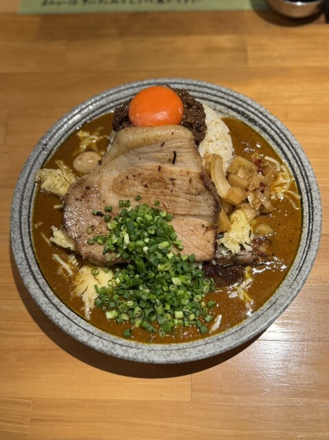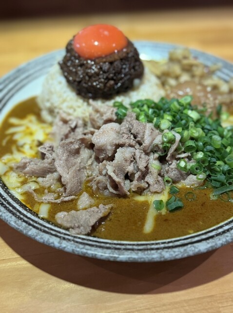 闇鍋カレー、ローストポーク、グリエールチーズ、ハンマーカンマーうずら、玉ねぎアチャール