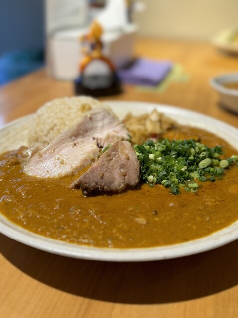 甘口(レギュラーカレー)、並、豚小、玉ねぎアチャール、ローストポーク(限定トッピング)、ゴーダチーズ(限定トッピング)、クリームシチュー(限定)