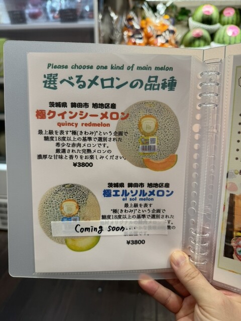 メロンは千葉県の丸南メロン。すぎのメロンはもはやジュースです。口に入れた瞬間溶けてなくなりますし、むしろ口に入れなくても溶けてなくなります。すんごいんですよ!レベル高すぎる。。甘くて甘くて震える〜♩