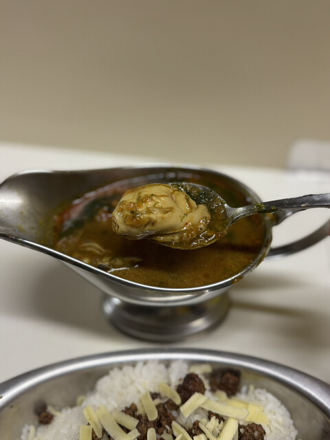 オイスターオーシャン(1月限定プレミアムかれー)、ご飯大盛り、チーズ、スパイシーひき肉