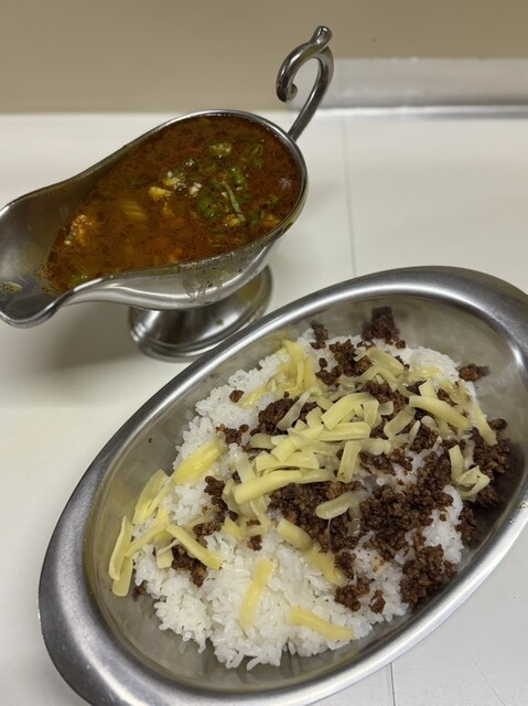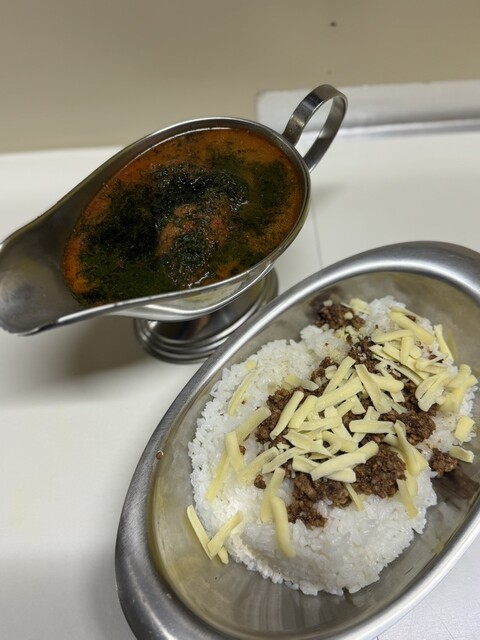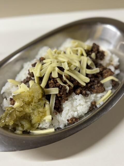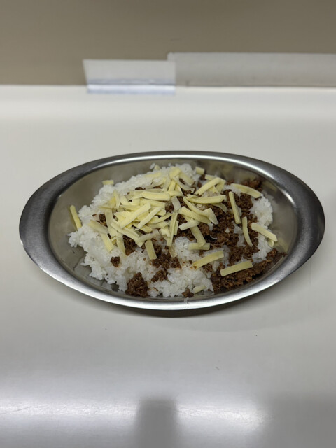 ご飯の方も安定の美味しさ。スパイシーひき肉とチーズをトッピングすると一気にご馳走になるのでトッピングはマストでお願いします。