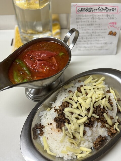 すーぷかれー初夏のプレミアム・ご飯大盛り・チーズ・スパイシーひき肉・焼トマト
