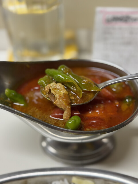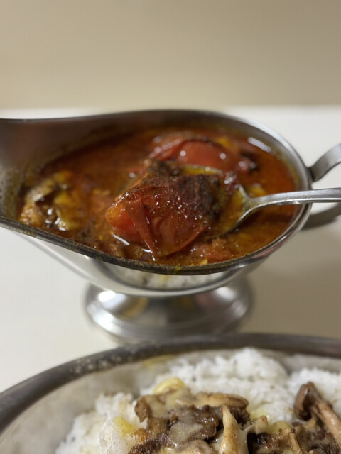中盤以降もかれーの美味しさがやばくてたまりません。それぞれの具材が主張しすぎずバランスがめっちゃ良くて素晴らしい。これまじで美味すぎませんか?ただそこのトマトが入って酸味が加わったらもっと好みだったのかもしれないのでまた今月どこかで必ず行きたいと思います。