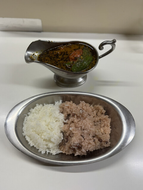 2025年6月のかれーは25周年と言うことで特別仕様。開店当初に出していたと言う復活の夏!そして事前予約で赤飯で食べると言うスペシャル仕様。自分もかなり前に予約をしていて今回訪問してきました。25周年おめでとうございます!