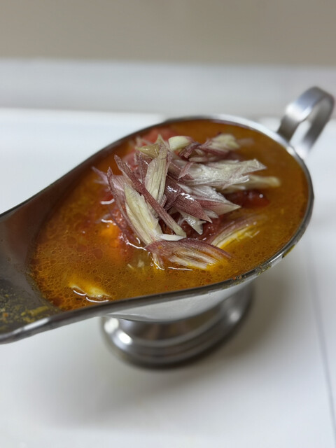 まずはかれーから飲んでみると今回も辛さは控えめで食べやすいタイプ。牡蠣の旨味全開+トマトと梅干しの酸味+青のりの磯感。全てが最高でめちゃくちゃ美味しいです。なんでこんな美味しいんでしょうか・・・。トマトの復活が個人的にも嬉しいのです。トマトはマストですよ!