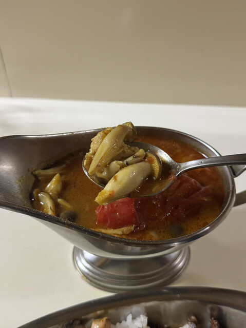 かれーから食べてみると前回よりも辛さは控えてでかなり食べやすい。そしてめちゃくちゃ美味い・・・。美味すぎませんか?牡蠣も大きくてブリンブリンでめちゃくちゃ美味い。やばいです。そしてトマト!やっぱりこのかれーにはトマトはマストです!この酸味がたまらなく美味しい。久々に食べましたが重要性は間違いなかったです。