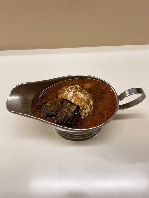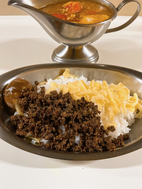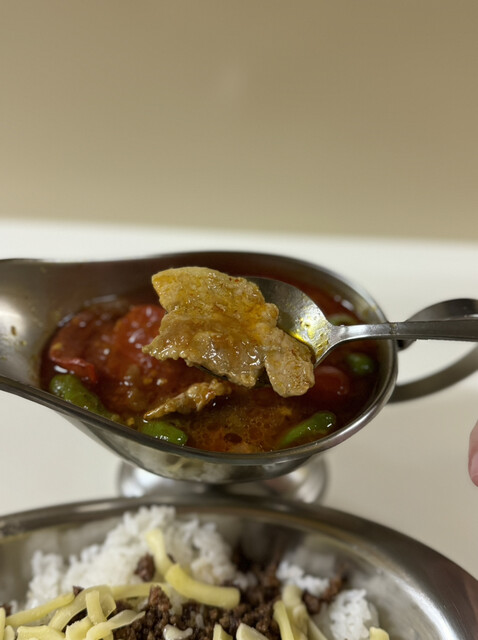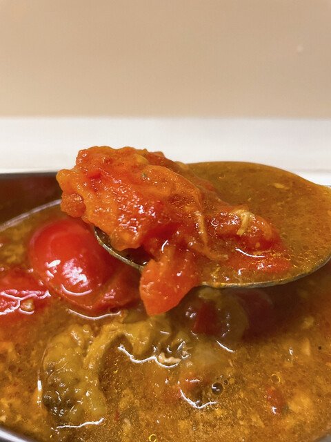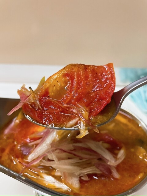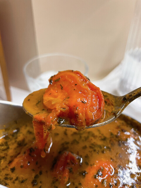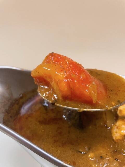 今回食べた季節のすーぷーかれーは5月・6月限定の初夏。それのプレミアムをいただいてきました。初夏とはししとう、豚バラ、ミニトマトが入っておりそれのプレミアムは梅干し入りです。トッピングはチーズ、スパイシーひき肉、焼きトマトでお願いしました。ほぼいつも通りですね。