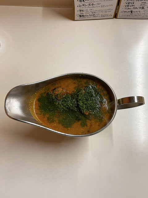 まずはカレーから。すっきりとした辛口で旨味が追っかけてきます。ああ、相変わらず美味い。ししとうはとんでもない量入っております。ししとうのほろ苦さとカレーが合いすぎてめちゃくちゃ美味いです。