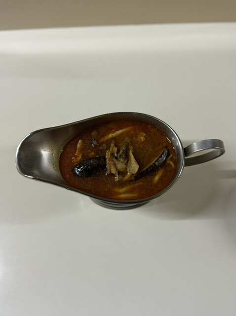 豚バラも甘くて美味しい。かなりいい仕事しておりましたね、このカレーまじで美味すぎる。梅のアクセントも最強なんですよ。うどんのカレーと梅の組合せは反則です。
