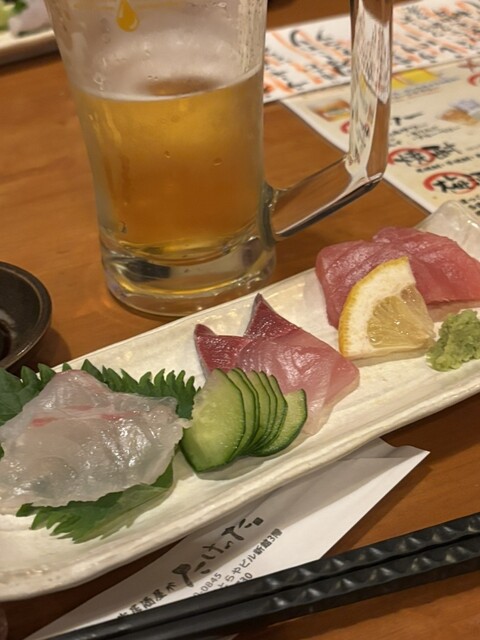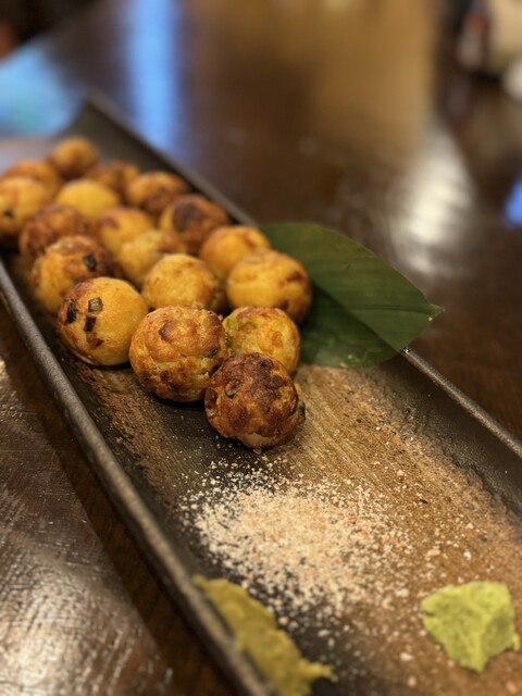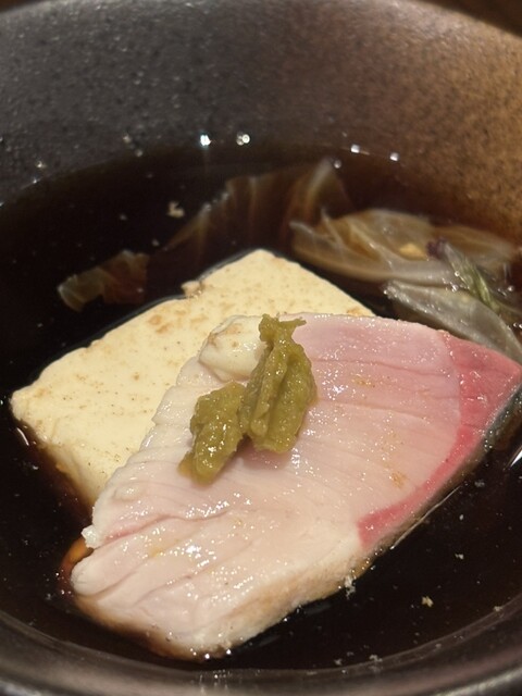 脂ののったお刺身に、ハバネロ醤油が合います。あんまり辛くない。魚の脂の味が引き立ちます。ハバネロ醤油も、大将は疑問が、あるみたいですから、食べてみたい方は、ハバネロ醤油出してくれ、と言った方がいいです。