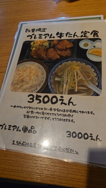 プレミアム牛タン定食をお願いしましたが、品切れとの事。牛タン定食を頂きます。