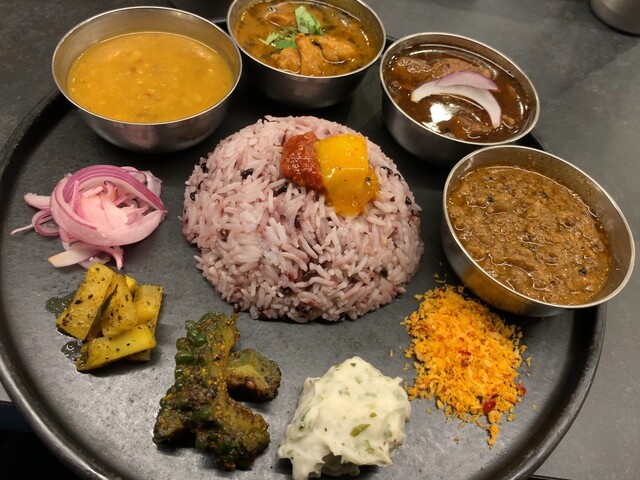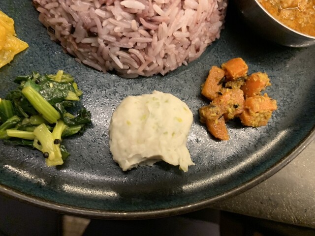 もちろん古代米を混ぜ合わせたバスマティライスやレモン、トマトのチャトニや付け合わせのアチャール達も名配役。最後までペロリと平らげた。