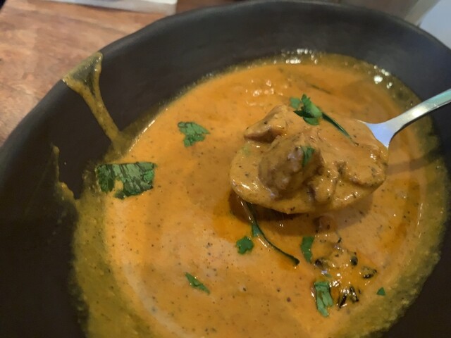 しばらくしてメインで頼んだマトンカレーとヴェラッパムが出てくる。マトンカレーは南インドらしからぬクリーミー感。現地で仕入れた珍しいスパイスのカルパシを配合しているようで、ガリっと噛んだ瞬間にシナモン系の甘さのあるスパイスを感じた。多分カルパシとかとは違うとは思うが、メニューに書かれた説明以外のスパイスも入っていると思う。いずれにしても美味いが。ヴェラッパムは珍しさで頼んでみた。ウタパムみたいな感じか?米粉を使っているのは容易に想像できたが、小ぶりのためかずっしりとしておらず軽い食感。でもどんなスパイスを使っているんだろう?
