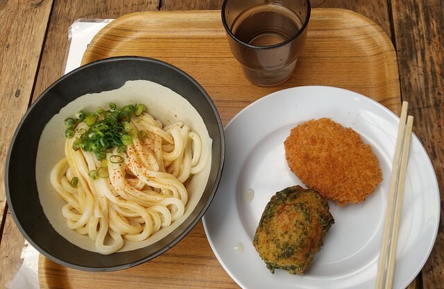 生醤油うどん・じゃがいも天ぷら・コロッケ