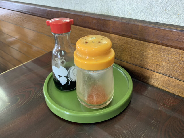 卓上には、醤油、一味、楊枝が常備されており、お水はセルフサービス。