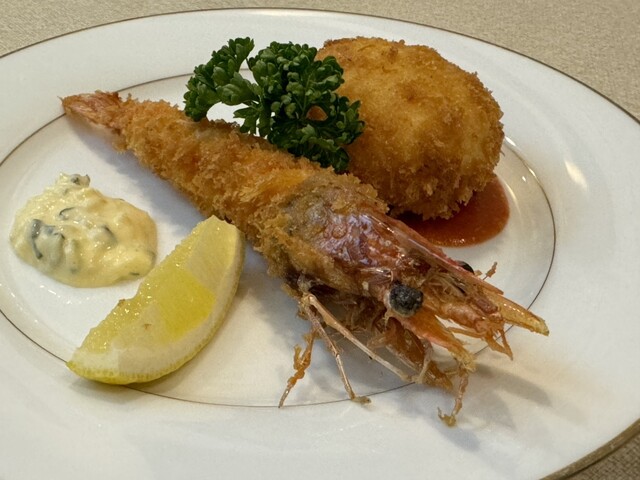 ハンバーグ、海老フライ、カニクリームコロッケはもちろんのこと、付け合わせやタルタルソースなども完璧!