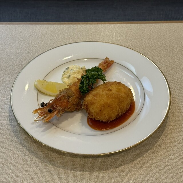 ・本日のおすすめ ハンバーグと海老フライとカニクリームコロッケ(サラダ・ライス付) 2,530円