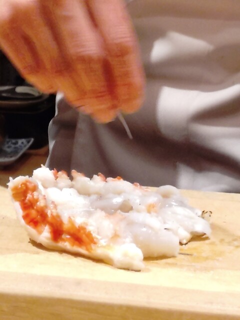 大将がその日市場で仕入れてきた食材を、生きている状態からお客さんに公開するなど、完璧な廣門ショーです。大将やお弟子さんの手元の動きを見ているだけでも十分楽しく、料理はからっきし苦手の私は羨望のまなざしで見つめるばかり。