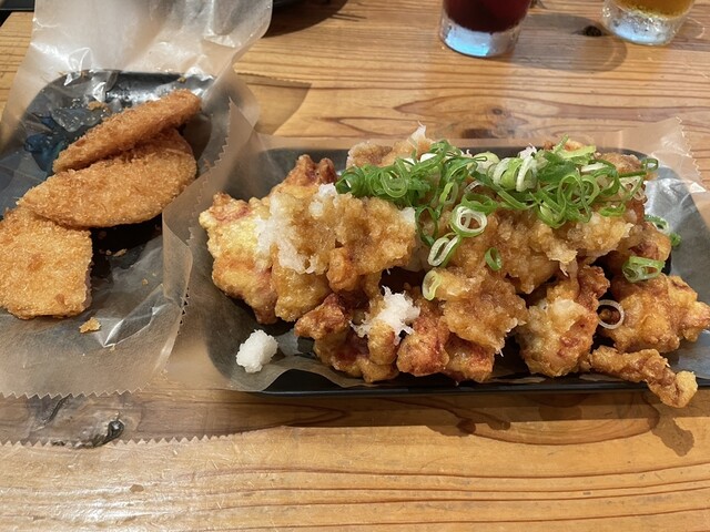 軟骨揚げ(食べかけ。本当はもっと沢山乗ってます)