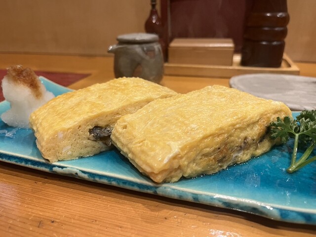 続いてうまき到着。卵を4個使っているらしくとても大きい。出汁が強めに効いててビールが進む味。フワっとした卵の風味はお店ならではという感じ。大根おろしでさっぱりさせたり、パセリを齧ったりして完食。大きいのでハーフサイズも推奨。