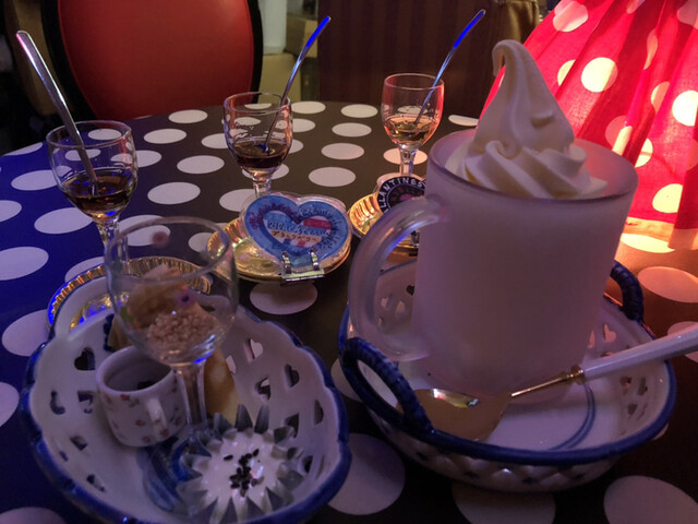 Bセット。カップのアイスクリームに、サービスの紅茶のリキュール、コーヒー、あとは130くらいある中から3種類アイスクリームにかけるお酒を選べます。今回はバランタイン、マッカラン、カルバトス。あとは連れが頼んだ甘めのお酒。アイスクリームはタイミング次第でおかわり可能。タイミング次第なので、店員さんのご説明をよく聞くように。