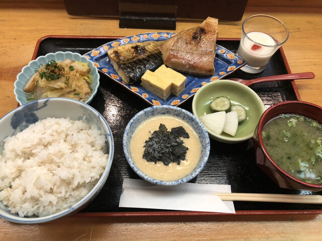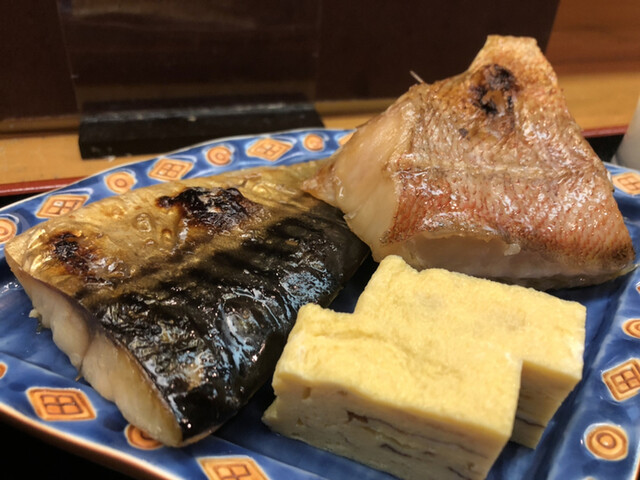 本日の焼き魚は、鯖と赤魚。どちらもおっきい。赤魚はさっぱり目の甘味で黙々と食べ進んでしまう。一方で鯖は脂たっぷりな甘味で、ご飯の上で鯖をほぐせば、鯖の脂がご飯に染みてこれまた旨い。