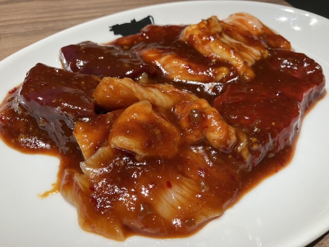 ミックスホルモン。ホルモンもいろいろ楽しめた方が嬉しいよね。ホルモンの変なクセもなく、独特の甘味と食感が楽しめる。