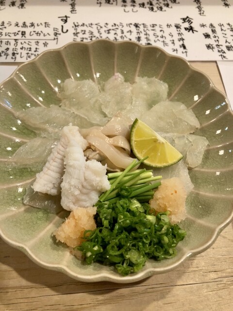 ・おこぜ薄造り 身が締まり甘味あり美味