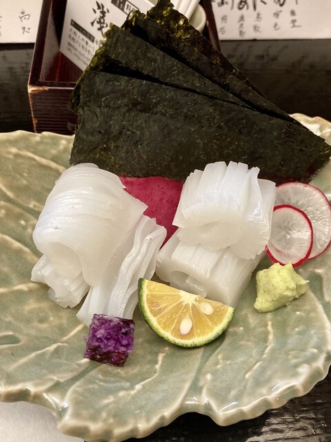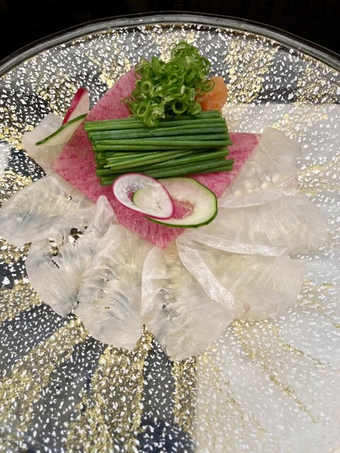 ・玉目鯛の薄造り 独特歯応えと甘味あり良き