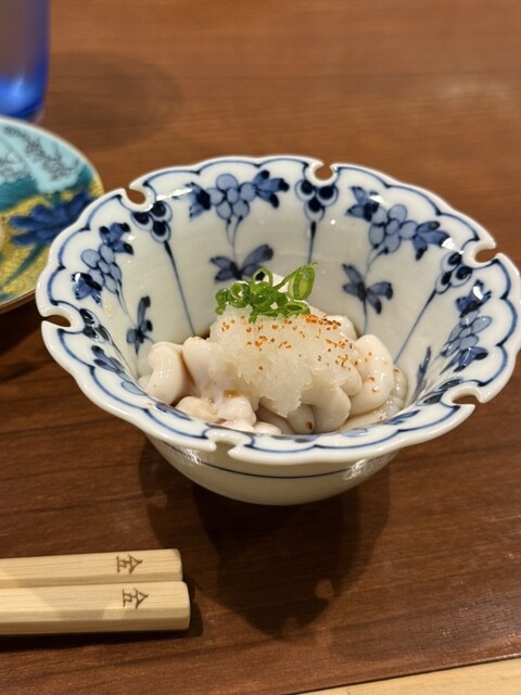 大将はとても気さくで話しやすく、楽しいひと時を過ごせました。お酒に合う料理が大将のおまかせで次々と出てきます。私たちは2名で訪れ、以下の料理を楽しみました。