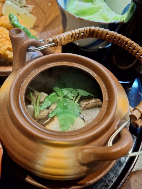 他の店であれば、脇役以下であるサラダも味噌汁替わりの土瓶蒸しも、名脇役に変身。("⌒∇⌒")