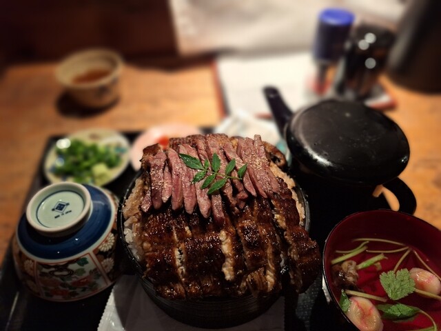 美味しいひつまぶしに特選和牛がのっているご褒美メニューがありました。