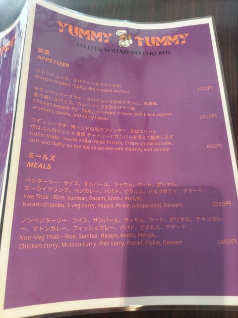 メニュー ミールスなど