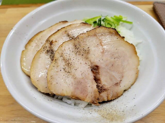 もちもち歯応えの縮れ太麺に、びっちり纏わるスープ。 初めて丼もの「ニクめし」450円をオーダーし、そこにもスープを投入!これは贅沢な丼。 辛味ニラと豆板醤も加えましたが、これは不要だったかも。